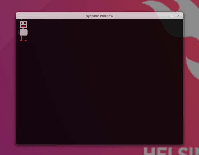 kello.tick(60)Metodi tick huolehtii siitä, että animaation nopeus on sopiva: se tahdistaa silmukan niin, että silmukka pyritään suorittamaan 60 kertaa sekunnissa. Toisin sanoen kuva liikkuu sekunnissa 60 pikseliä oikealle. Tämä vastaa suunnilleen pelien yhteydessä käytettävää termiä FPS (frames per second).
