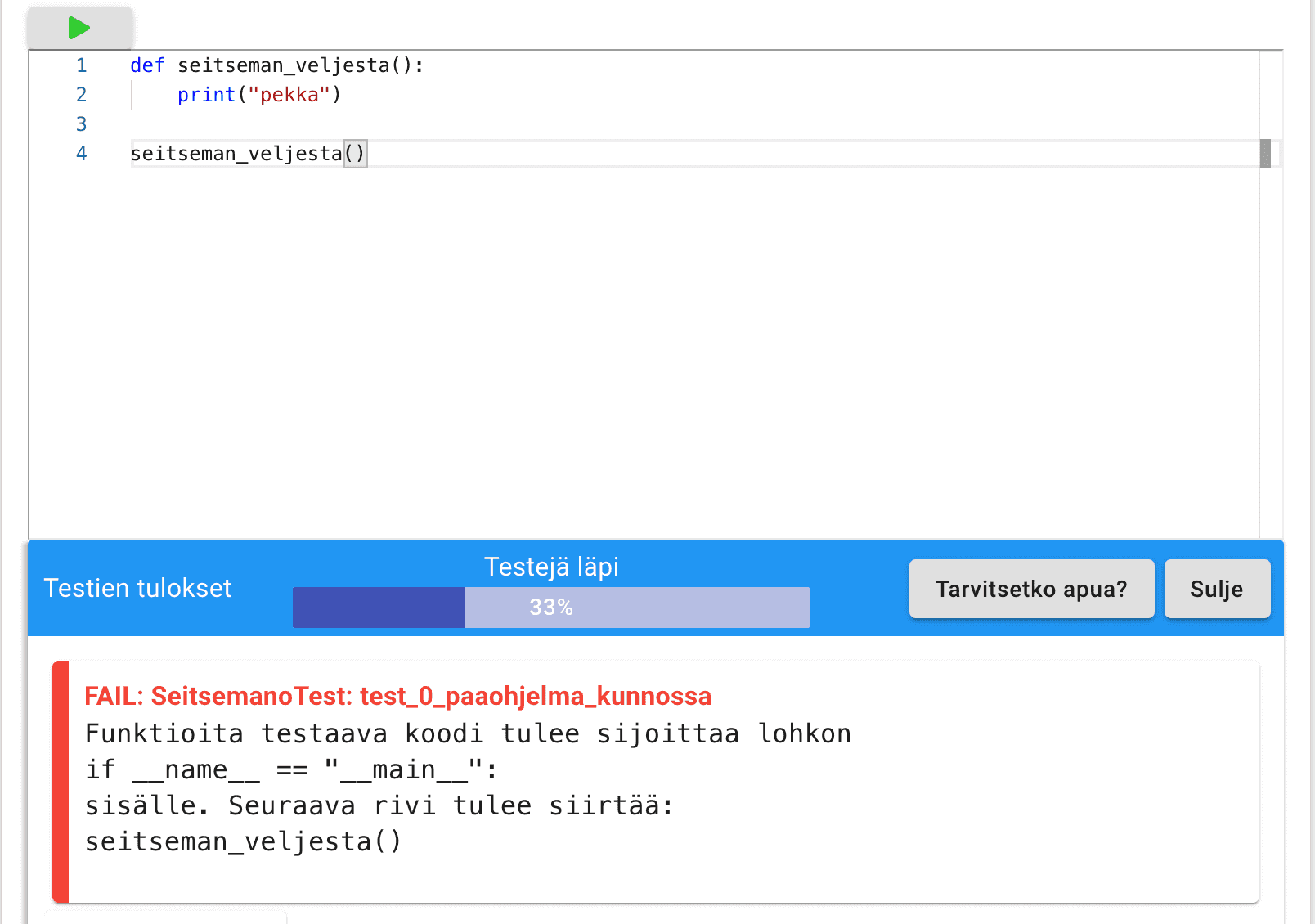 Palaamme funktioihin ja parametrien määrittelyyn tarkemmin seuraavan osan alussa.