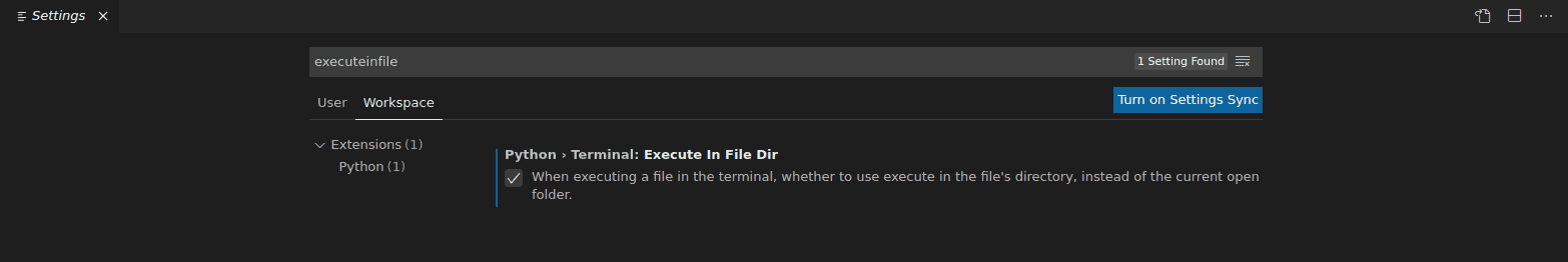 - Laita raksi kohtaan Python -> Terminal -> Execute In File Dir