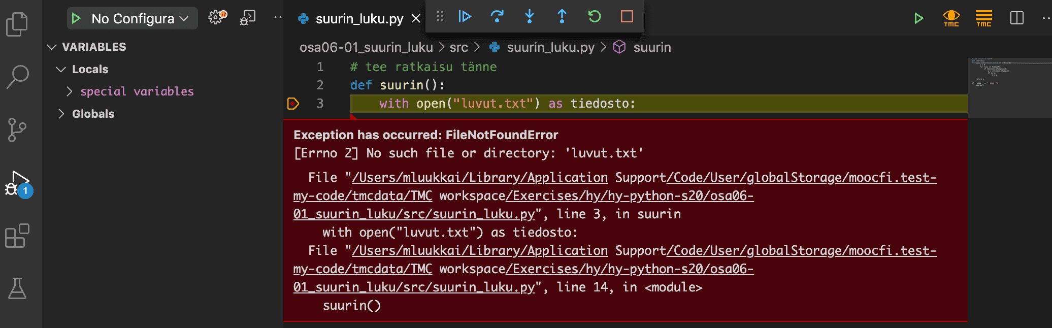 Mitä jos VS code ei löydä tiedostoja koodia suoritettaessa?