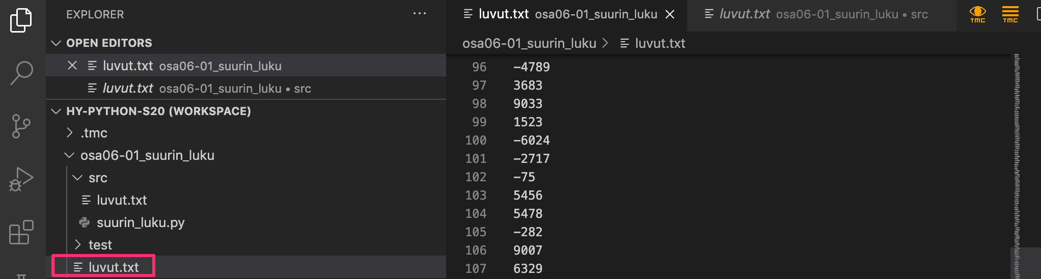 Kun olet kopioinut tiedostot tehtävähakemiston juureen, joudut ehkä vielä käynnistämään visual studio coden uudelleen jotta kaikki toimisi.